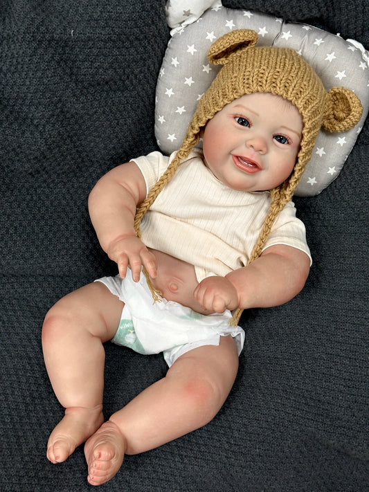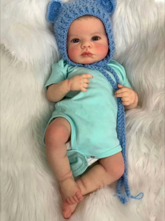 Finn – Bambola Reborn realistica da 60 cm con occhi azzurri e capelli impiantati
